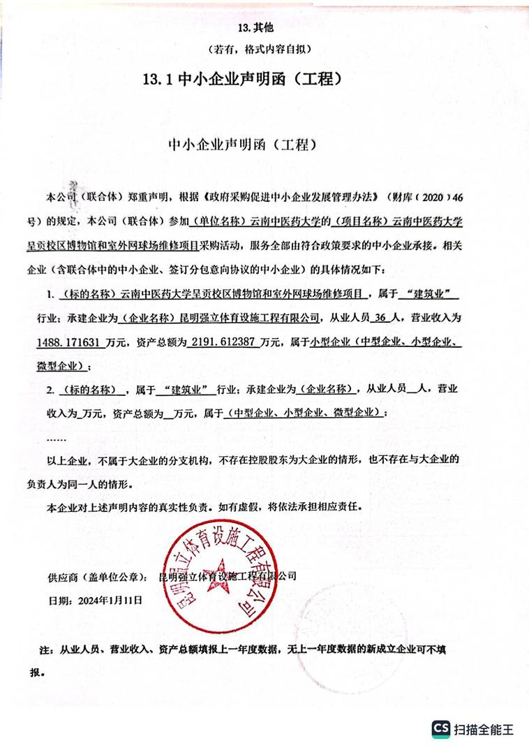 名称:云南中医药大学呈贡校区博物馆和室外网球场维修项目